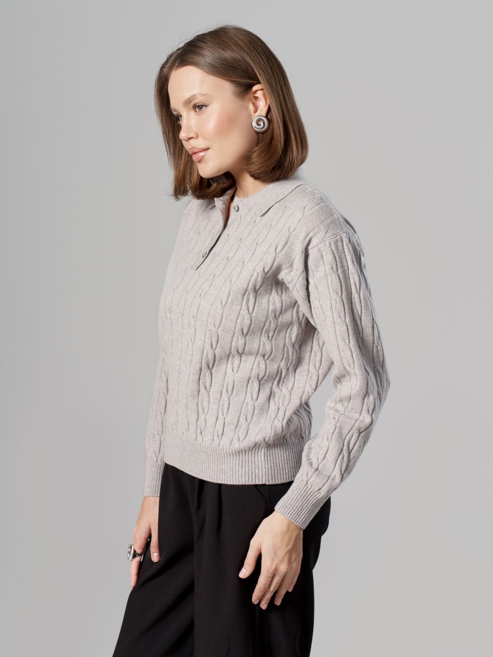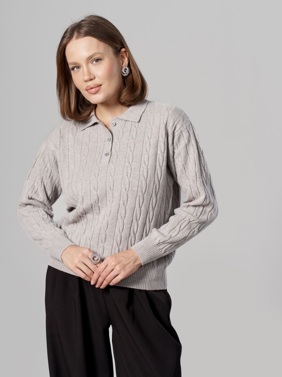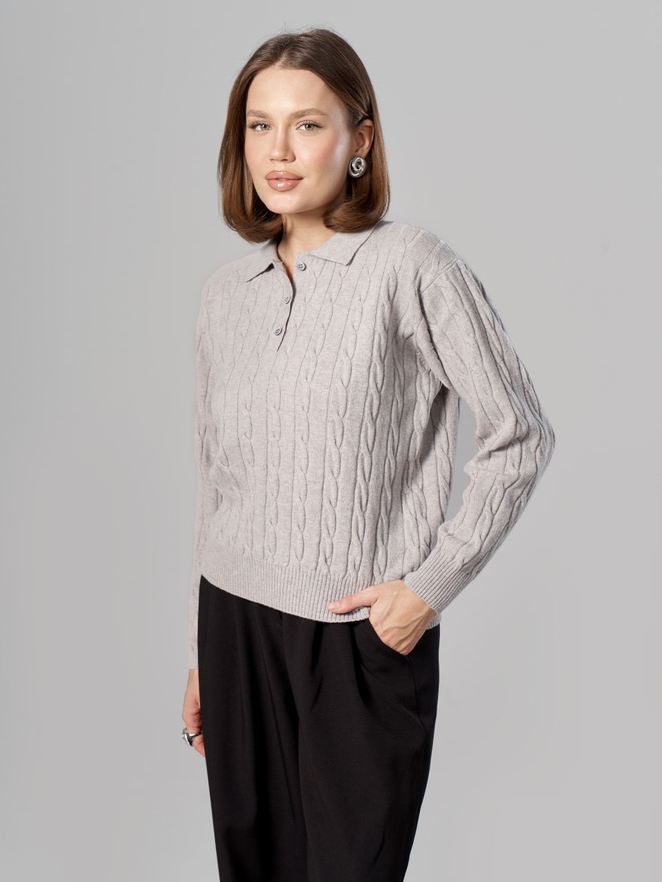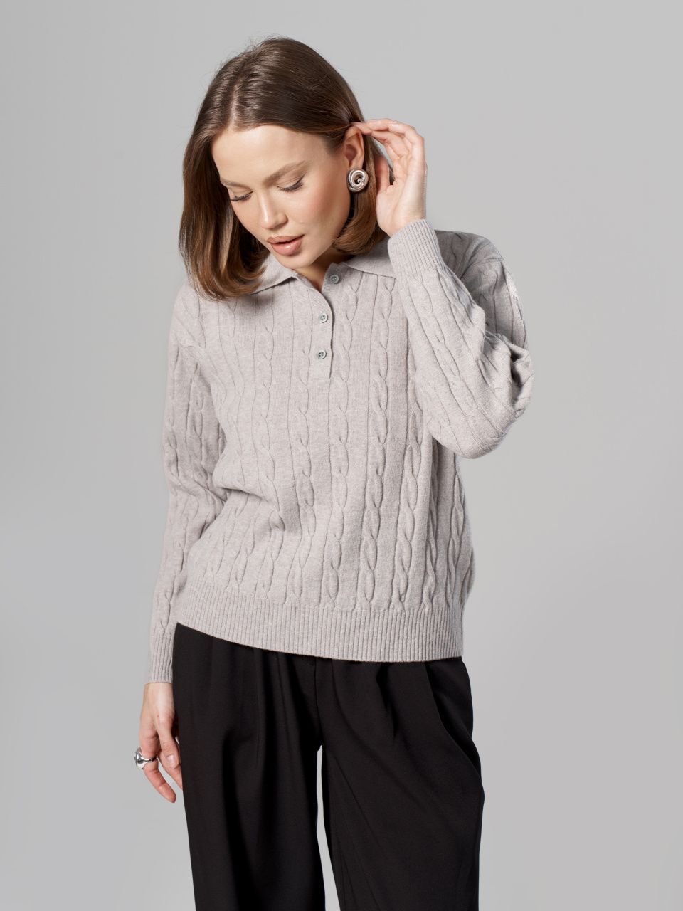Джемпер-поло с косами из шерсти мериноса