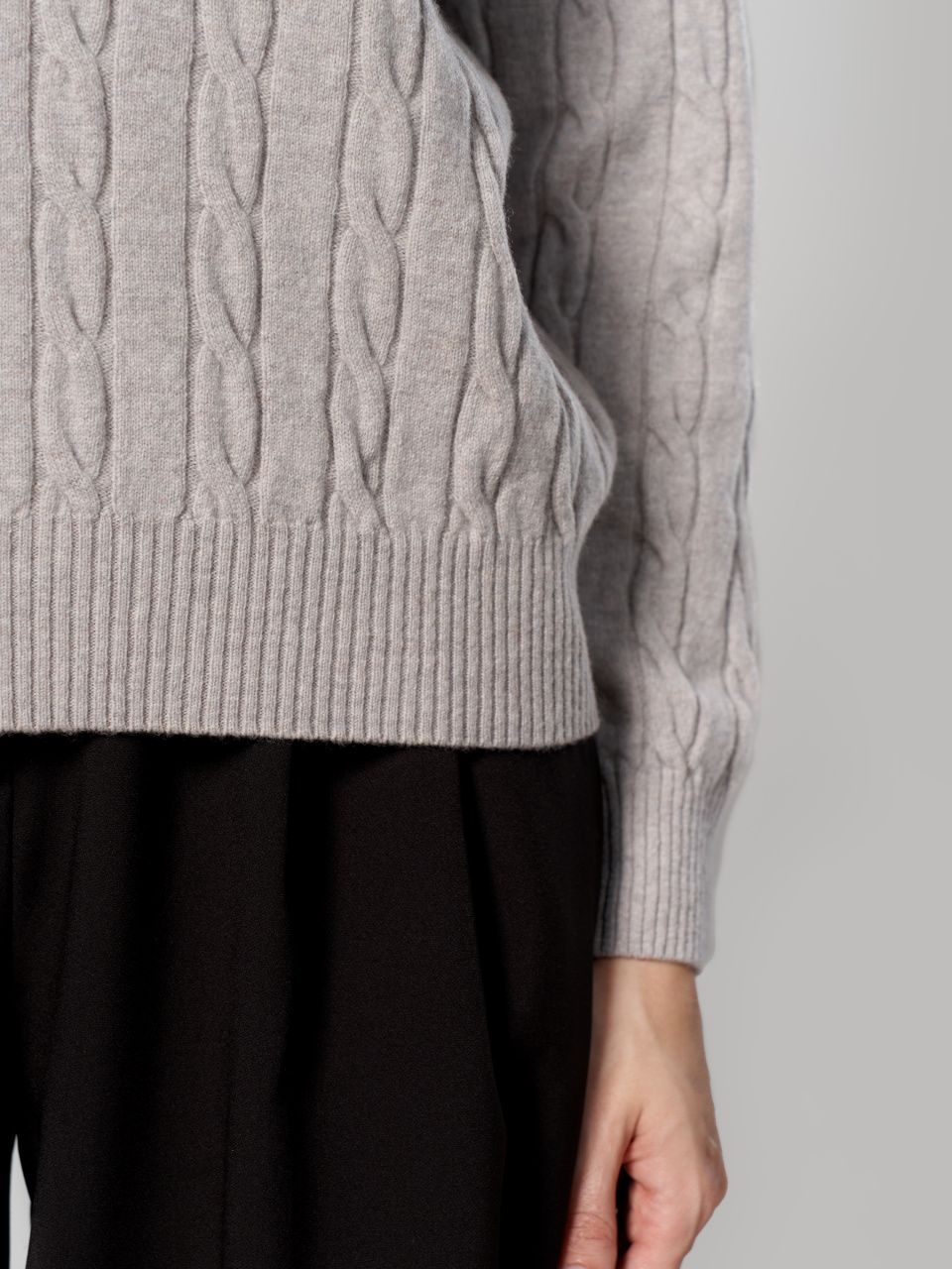 Этот джемпер выполнен из 100% шерсти мериноса, которая великолепно удерживает тепло и обладает особой мягкостью. Фактурный узор «косы» придает модели объем и выразительность, делая её идеальным выбором как для уютных повседневных образов, так и для элегантного офисного стиля.