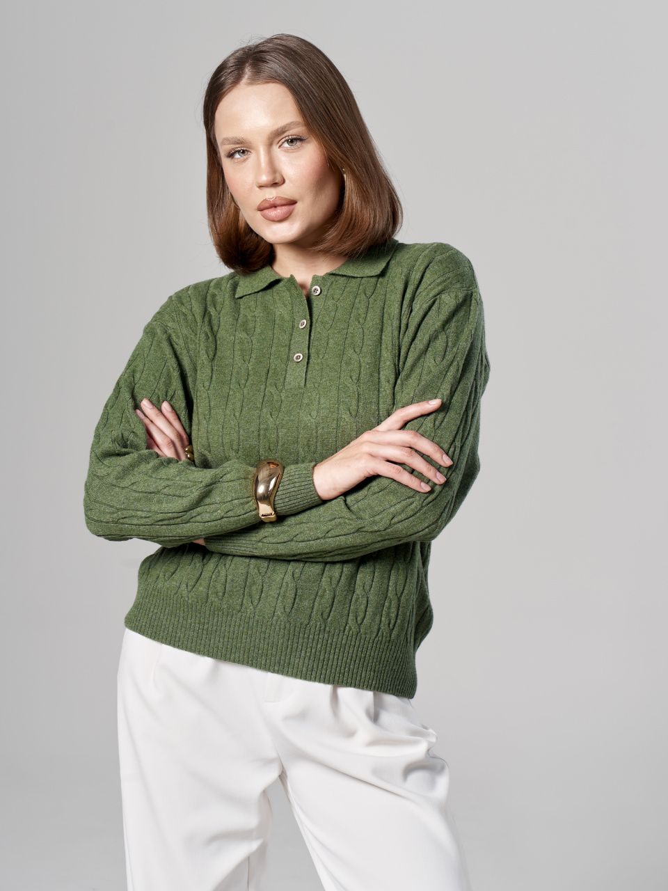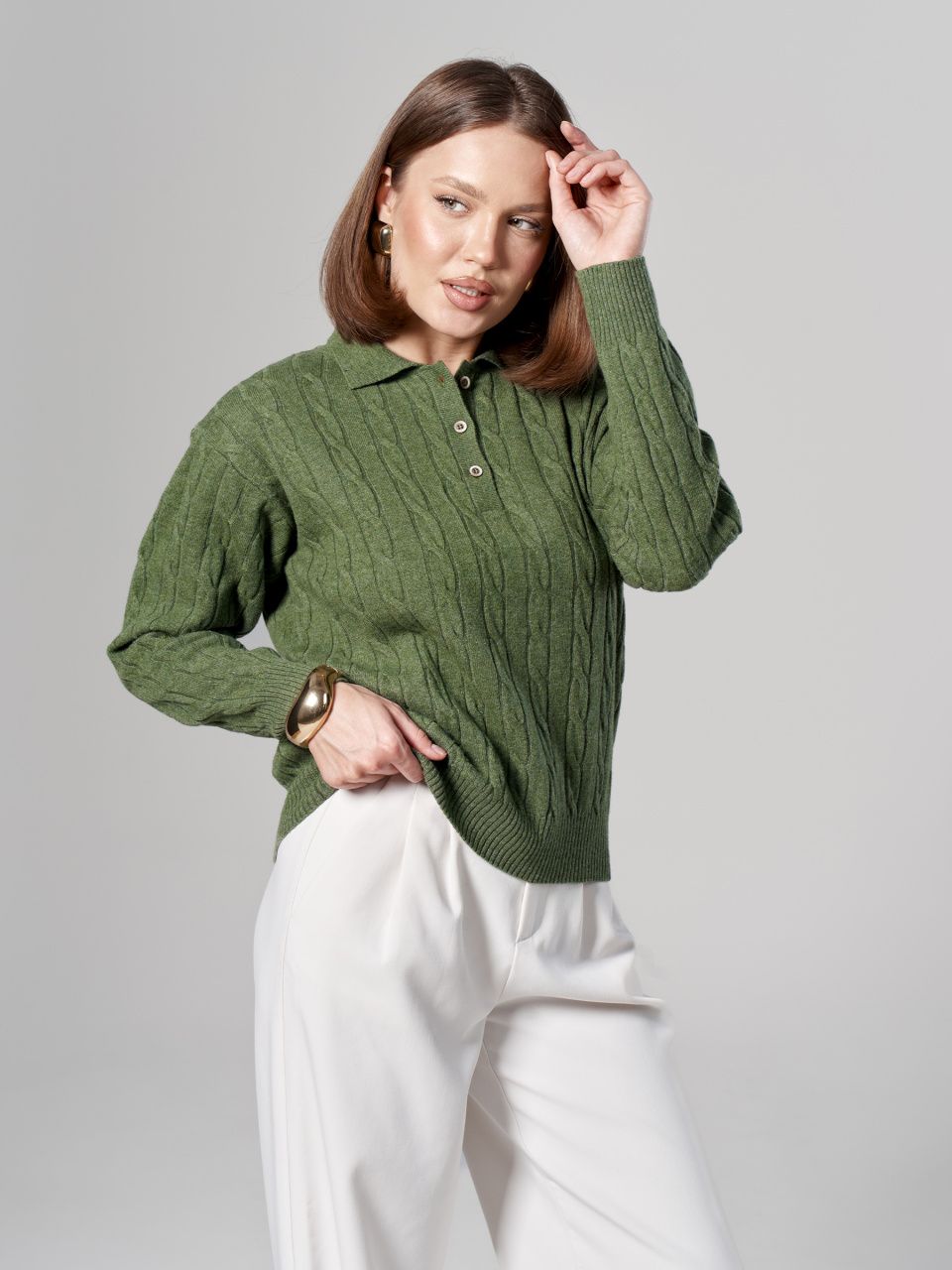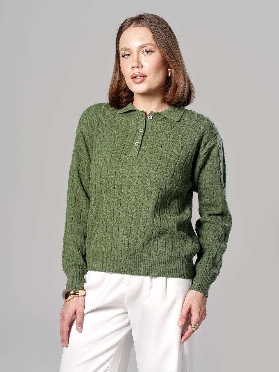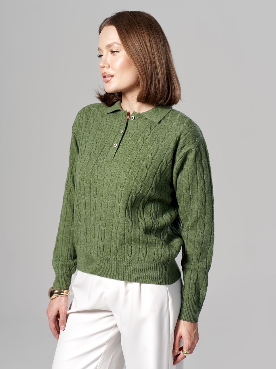 Джемпер-поло с косами из шерсти мериноса